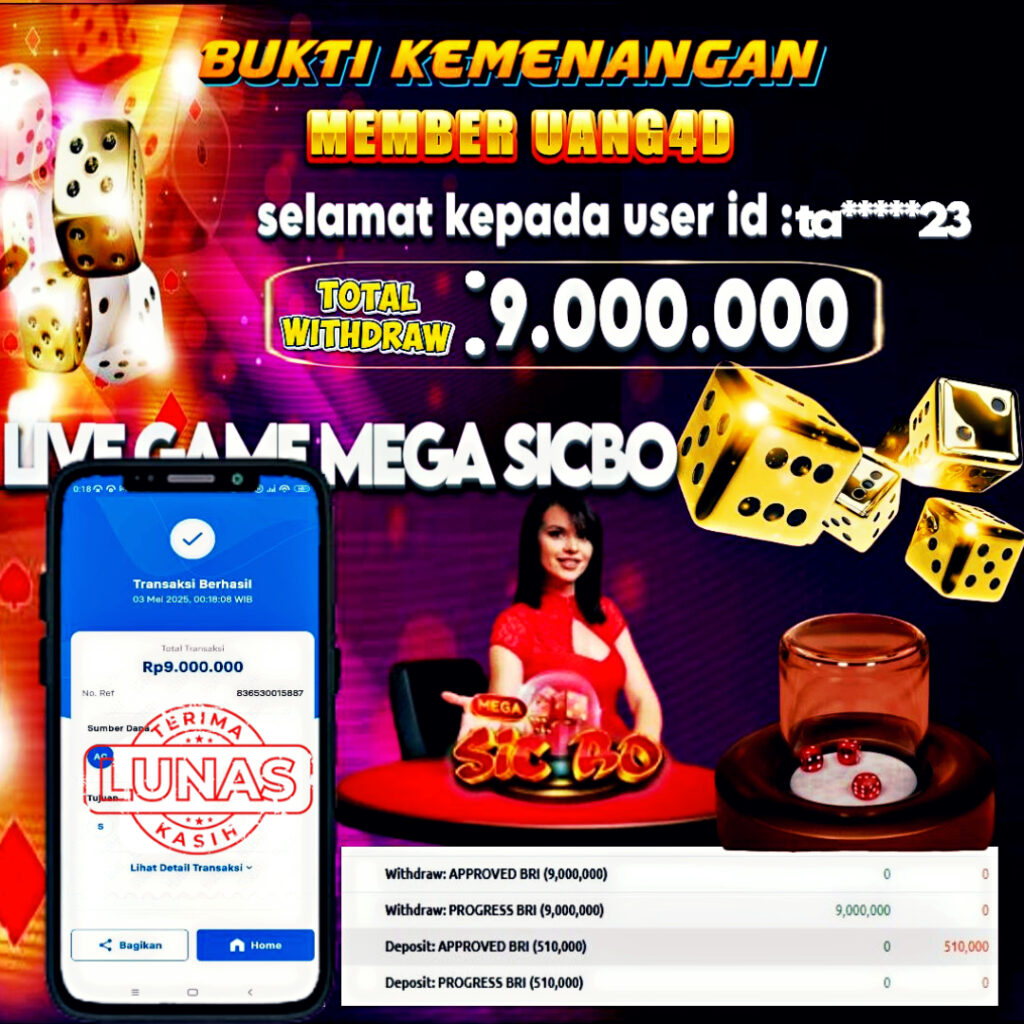 Setiap hari, member UANG4D berhasil meraih jackpot besar dari berbagai macam permainan livecasino ternama yang kami sediakan, seperti Roullete, Dragon & Tiger, Qiu Qiu dan masih banyak lagi. Kami secara rutin menampilkan bukti screenshot atau rekapan kemenangan yang berhasil diraih, mulai dari kemenangan ratusan ribu hingga puluhan juta rupiah. Semua slip kemenangan ini kami hadirkan untuk membuktikan bahwa di UANG4D, peluang menang itu nyata.