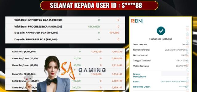 JACKPOT Live Games SA-Baccarat 08 APRIL 2025 , Jackpot Live Casino, Kemenangan Live Casino, Bukti Kemenangan Live Casino, Kemenangan Live Games SA-Baccarat, Menang Live Casino, Live Casino Terpercaya, Situs Aman Terpercaya, WD Berapapun Pasti DI Bayar Tuntas, Maxwin Live Casino Online.