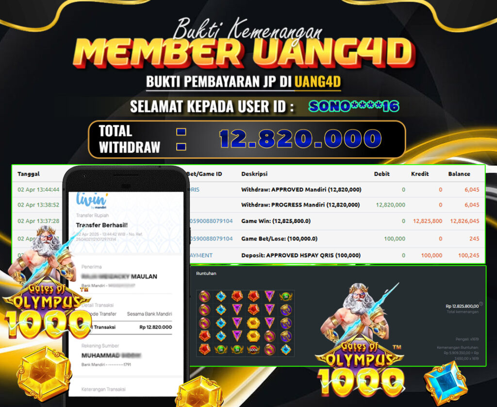 UANG4D– JACKPOT SLOT GACOR OLYMPUS1000 02 APRIL 2025, Jackpot Slot, Kemenangan Slot, Bukti Kemenangan Slot, Kemenangan Slot Pragmatic Play, Menang Slot online, Slot Gacor, Situs Aman Terpercaya, WD Berapapun Pasti DI Bayar Tuntas, Maxwin Slot Online.
