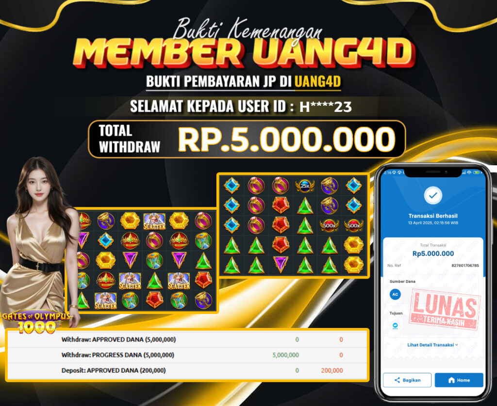 UANG4D –JACKPOT SLOT OLYMPUS 1000 13 APRIL 2025, Kemenangan Slot, Bukti Kemenangan Slot, Kemenangan Slot Pragmatic Play, Menang Slot online, Slot Gacor, Situs Aman Terpercaya, Withdraw Berapapun Pasti DI Bayar Tuntas, Maxwin Slot Online.