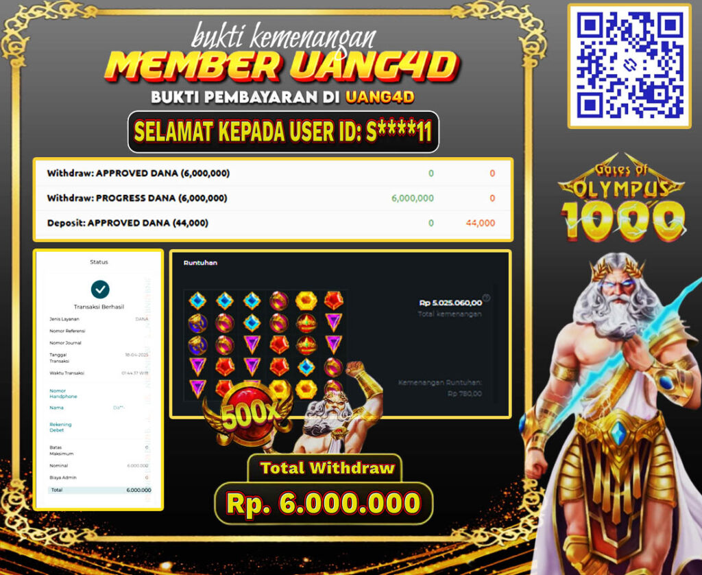 UANG4D JACKPOT SLOT OLYMPUS 1000 18 APRIL 2025, Kemenangan Slot, Bukti Kemenangan Slot, Kemenangan Slot Pragmatic Play, Menang Slot online, Slot Gacor, Situs Aman Terpercaya, Withdraw Berapapun Pasti DI Bayar Tuntas, Maxwin Slot Online.