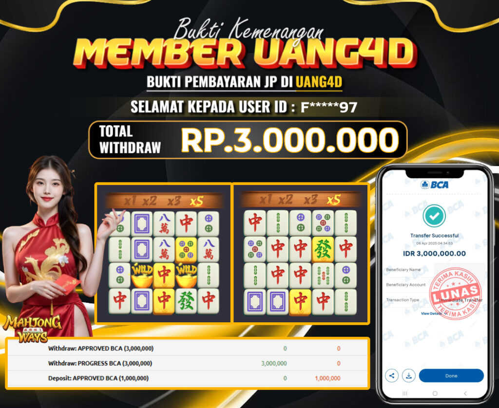 UANG4D JACKPOT SLOT MAHJONG WAYS 06 APRIL 2025, Jackpot Slot, Kemenangan Slot, Bukti Kemenangan Slot, Kemenangan Slot PG Soft, Menang Slot online, Slot Gacor, Situs Aman Terpercaya, Withdraw Berapapun Pasti DI Bayar Tuntas, Maxwin Slot Online.