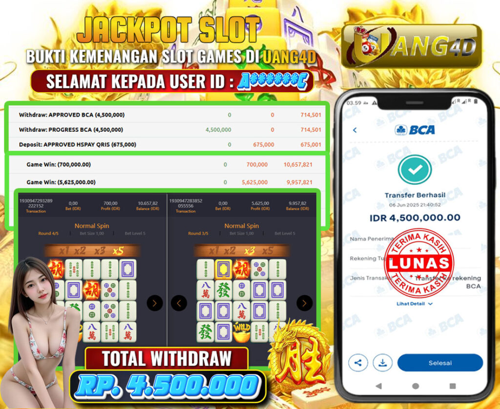 UANG4D – JACKPOT SLOT MAHYONG WAYS 07 JUNI 2025 , Jackpot Slot, Kemenangan Slot, Bukti Kemenangan Slot, Kemenangan Slot Pragmatic Play, Menang Slot online, Slot Gacor, Situs Aman Terpercaya, Withdraw Berapapun Pasti DI Bayar Tuntas, Maxwin Slot Online.