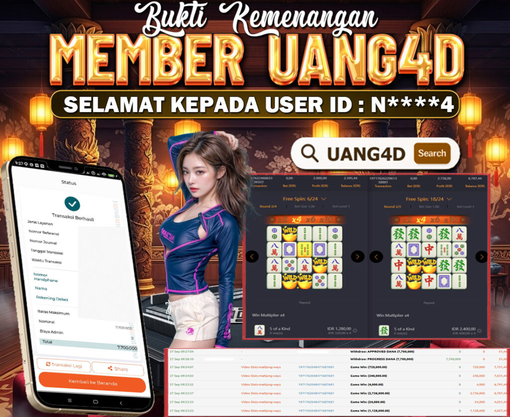 Jangan lewatkan kesempatan untuk meraih kemenangan besar. Daftar sekarang di UANG4D dan rasakan pengalaman bermain slot terbaik yang pernah ada! Putar gulungan, menangkan jackpot, dan jadilah bagian dari komunitas pemain sukses kami!