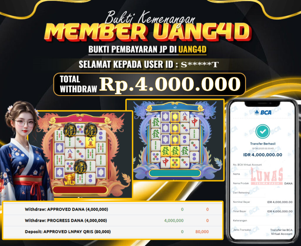 UANG4D JACKPOT SLOT MAHYONG WAYS 3 (Black Scatter) 13 OKTOBER 2025 , Jackpot Slot, Kemenangan Slot, Bukti Kemenangan Slot, Kemenangan Slot Pragmatic Play, Menang Slot online, Slot Gacor, Situs Aman Terpercaya, Withdraw Berapapun Pasti DI Bayar Tuntas, Maxwin Slot Online.