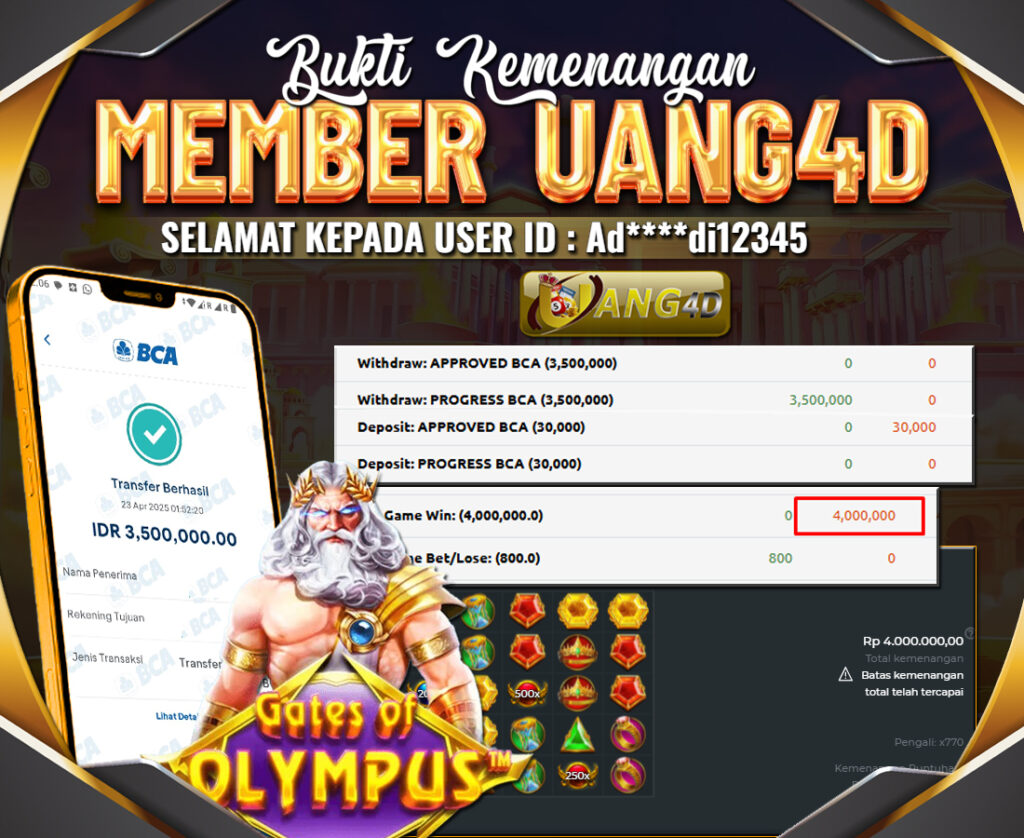 UANG4D JACKPOT SLOT GATES OLYMPUS 23APRIL 2025, Kemenangan Slot, Bukti Kemenangan Slot, Kemenangan Slot Pragmatic Play, Menang Slot online, Slot Gacor, Situs Aman Terpercaya, Withdraw Berapapun Pasti DI Bayar Tuntas, Maxwin Slot Online.