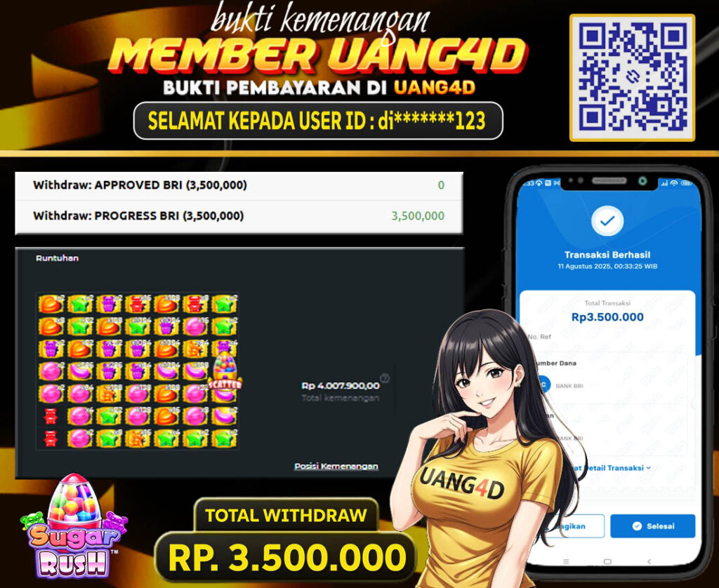 UANG4D –JACKPOT SLOT Sugar Rush 11 Agustus 2025, Kemenangan Slot, Bukti Kemenangan Slot, Kemenangan Slot Pragmatic Play, Menang Slot online, Slot Gacor, Situs Aman Terpercaya, Withdraw Berapapun Pasti DI Bayar Tuntas, Maxwin Slot Online.