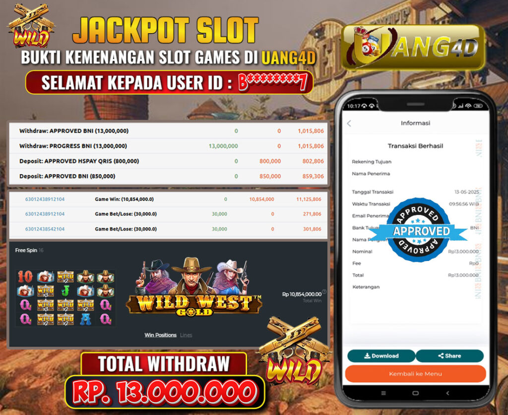 UANG4D JACKPOT SLOT WILD WEST GOLD MEGAWAYS 13, MEI, 2025 , Jackpot Slot, Kemenangan Slot, Bukti Kemenangan Slot, Kemenangan Slot PG SOFT Play, Menang Slot online, Slot Gacor, Situs Aman Terpercaya, Withdraw Berapapun Pasti DI Bayar Tuntas, Maxwin Slot Online.