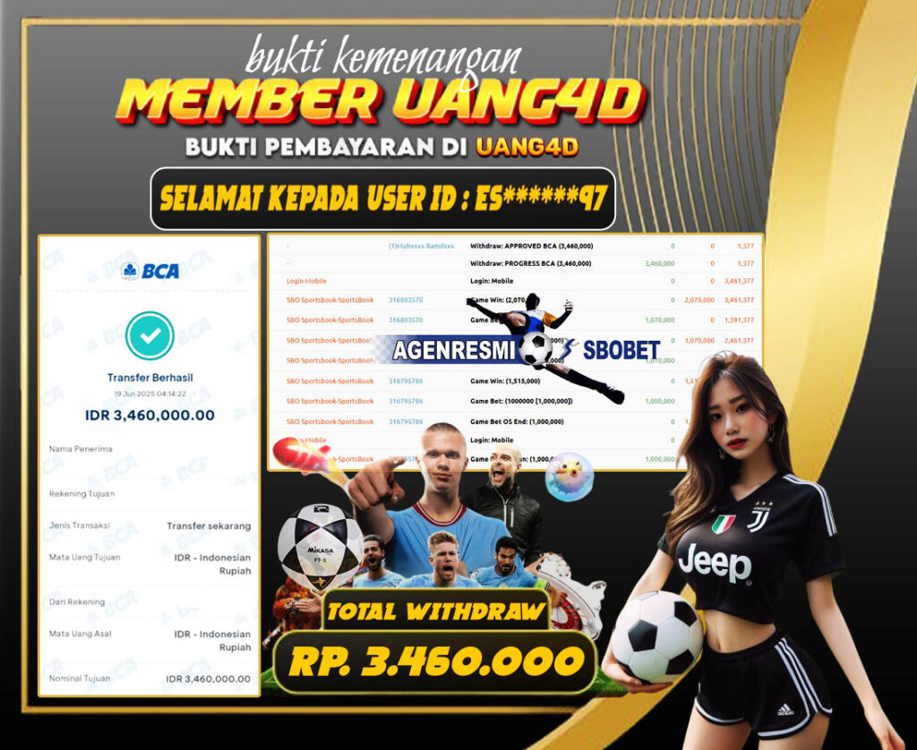 Setiap hari, member UANG4D berhasil meraih jackpot besar dari berbagai provider slot ternama yang kami sediakan, seperti Pragmatic Play, Habanero, PG Soft, dan masih banyak lagi. Kami secara rutin menampilkan bukti screenshot atau rekapan kemenangan yang berhasil diraih, mulai dari kemenangan ratusan ribu hingga puluhan juta rupiah. Semua slip kemenangan ini kami hadirkan untuk membuktikan bahwa di UANG4D, peluang menang itu nyata.