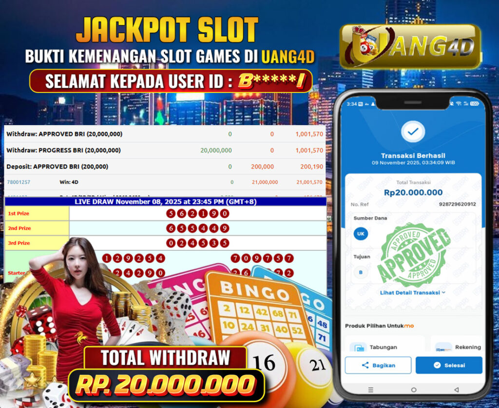 UANG4D dikenal sebagai situs terpercaya yang selalu menghadirkan pengalaman bermain slot online yang aman, fair, dan berlisensi resmi. Di sini, kami tidak hanya sekadar memberikan janji, tapi bukti nyata berupa slip kemenangan yang dapat Anda lihat secara langsung.