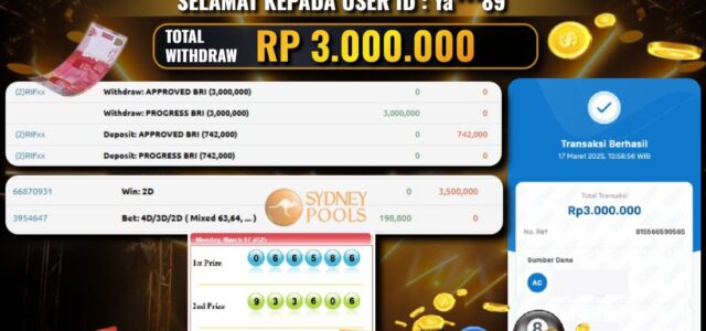 JACKPOT TOGEL MAIN SYDNEY 17 MARET 2025, Jackpot Togel Akurat, Kemenangan Togel, Bukti Kemenangan Togel, Kemenangan Togel Sydney, Menang Togel online, Togel Gacor, Situs Aman Terpercaya, WD Berapapun Pasti DI Bayar Tuntas, Maxwin Togel Online.